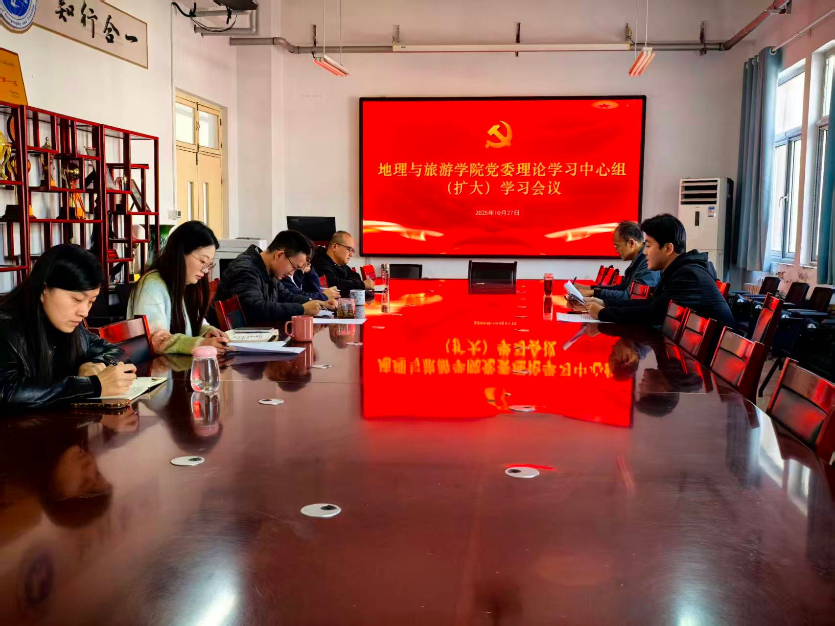 10月27日,地理与旅游学院在一教B406会议室召开党委理论学习中心组(扩大)集体学习会。学院党委理论学习中心组全体成员及全体辅导员参加会议,会议由学院党委书记秦拓主持。