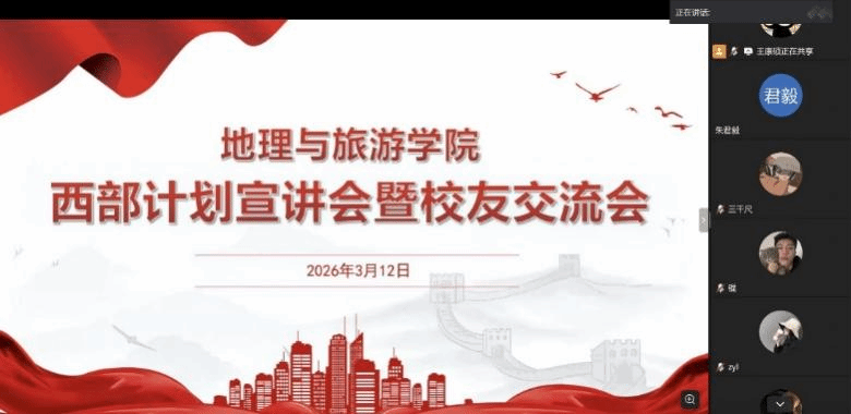 为落实大学生志愿服务西部计划工作部署,引导青年学子扎根基层、服务国家,鼓励毕业生投身西部建设,近日,地理与旅游学院线上举办西部计划宣讲会暨校友交流会,全体毕业生参加。