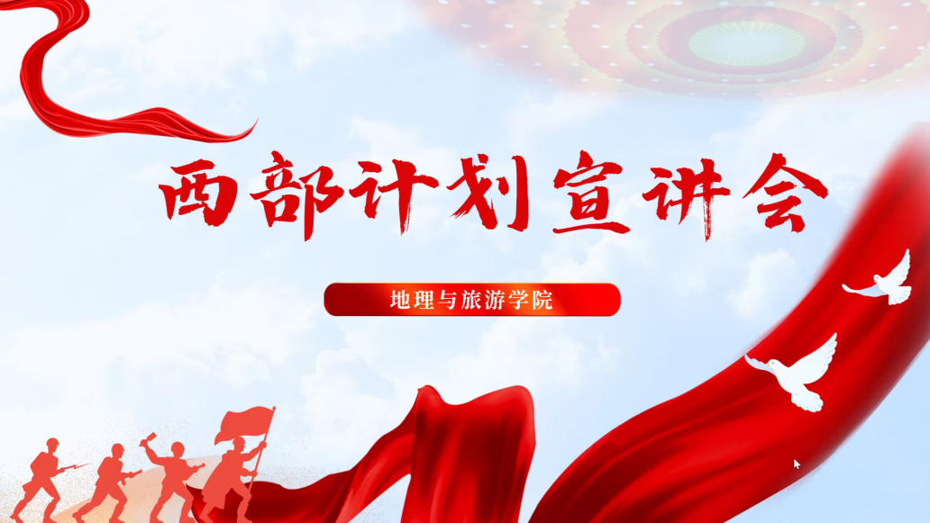 为引导广大青年学子积极投身到祖国和人民最需要的西部地区,地理与旅游学院于4月8日举办西部计划宣讲会,地理与旅游学院辅导员徐媛媛、片康,优秀校友李玉朋、杨静以及毕业生参加会议,会议由徐媛媛主持。