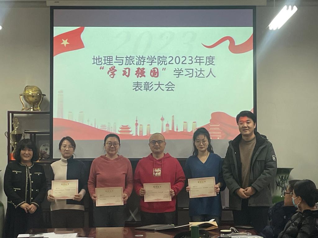 会上,学院党委书记秦拓宣读了2023年度地理与旅游学院“学习强国”学习达人获奖名单,并与副院长王敏一起为他们颁发了“学习达人”荣誉证书以及学习纪念品。