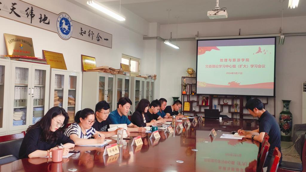 5月31日,地理与旅游学院召开党委理论学习中心组(扩大)学习会议,学院党委理论学习中心组全体成员及全体辅导员参加会议,会议由秦拓主持,齐鲁师范学院党委委员、统战部部长宋新刚列席会议并指导。