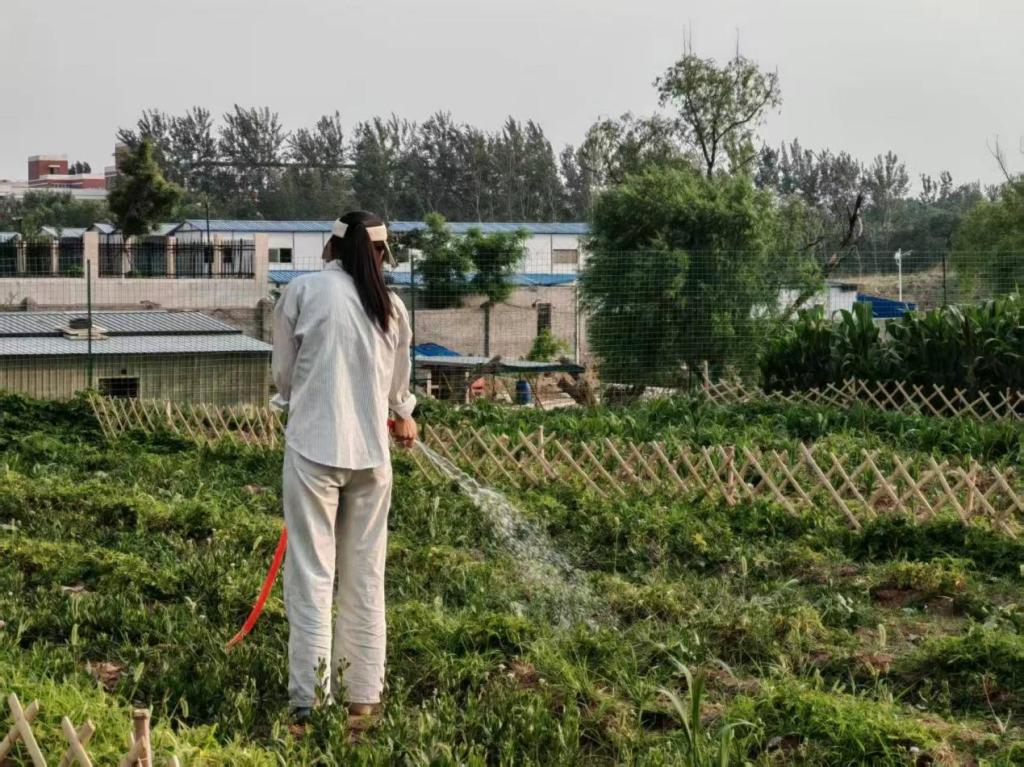在教师示范后,学生们分组有序开展劳动实践。播种时,同学们将课堂知识融入操作,规范使用农具完成土豆种植;除草过程中,面对顽固杂草,大家借助工具耐心清理;浇水环节,依据土壤特性,采取精细化浇灌方式,确保每一株作物都能得到适宜水分滋养,切实将理论知识转化为劳动实践能力。