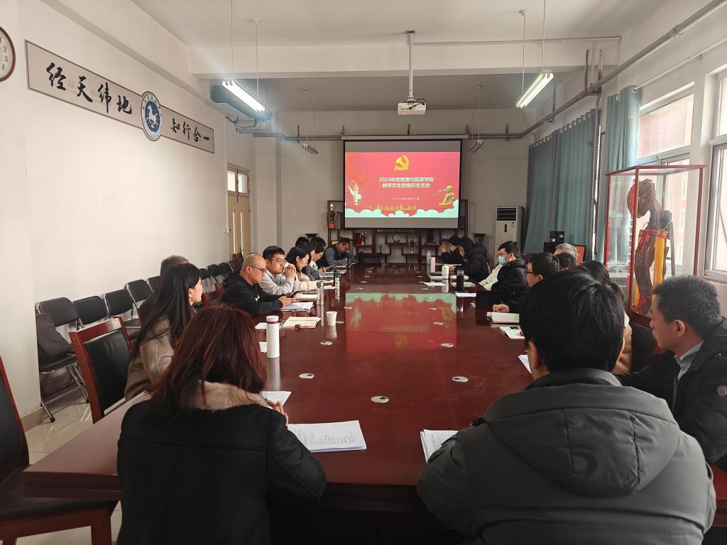 地理与旅游学院教师党支部于2025年2月27日下午在1号教学楼B415召开了组织生活会,学院党委书记秦拓、院长王敏、副书记王志勇、副院长郭菲、副院长惠洪宽及全体教师党员参加了此次会议。