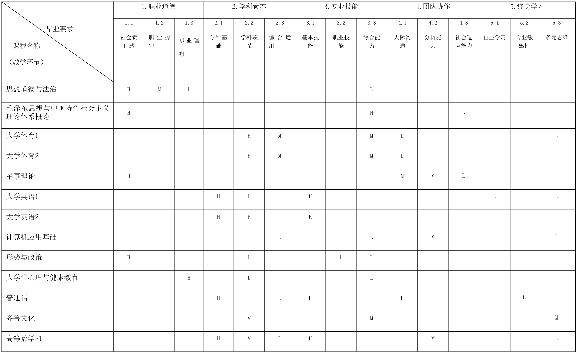 三、课程体系支撑毕业要求分解指标点矩阵图