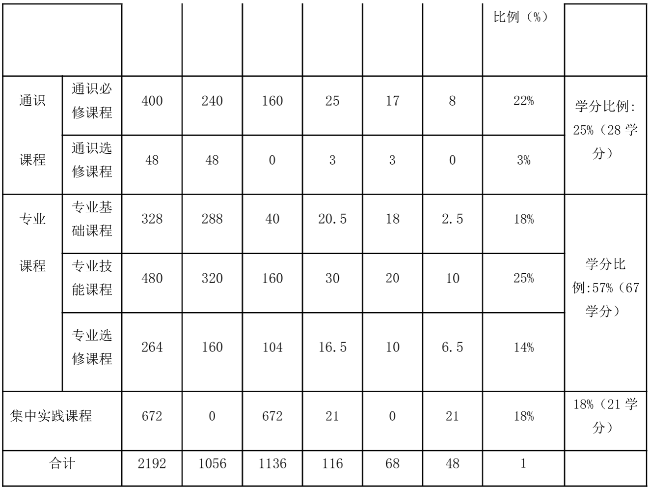 (4)课程实践:部分课程在开设学期中设置每周一个学时的实践教学。校内公益劳动、专业见习、毕业实习、毕业设计等。