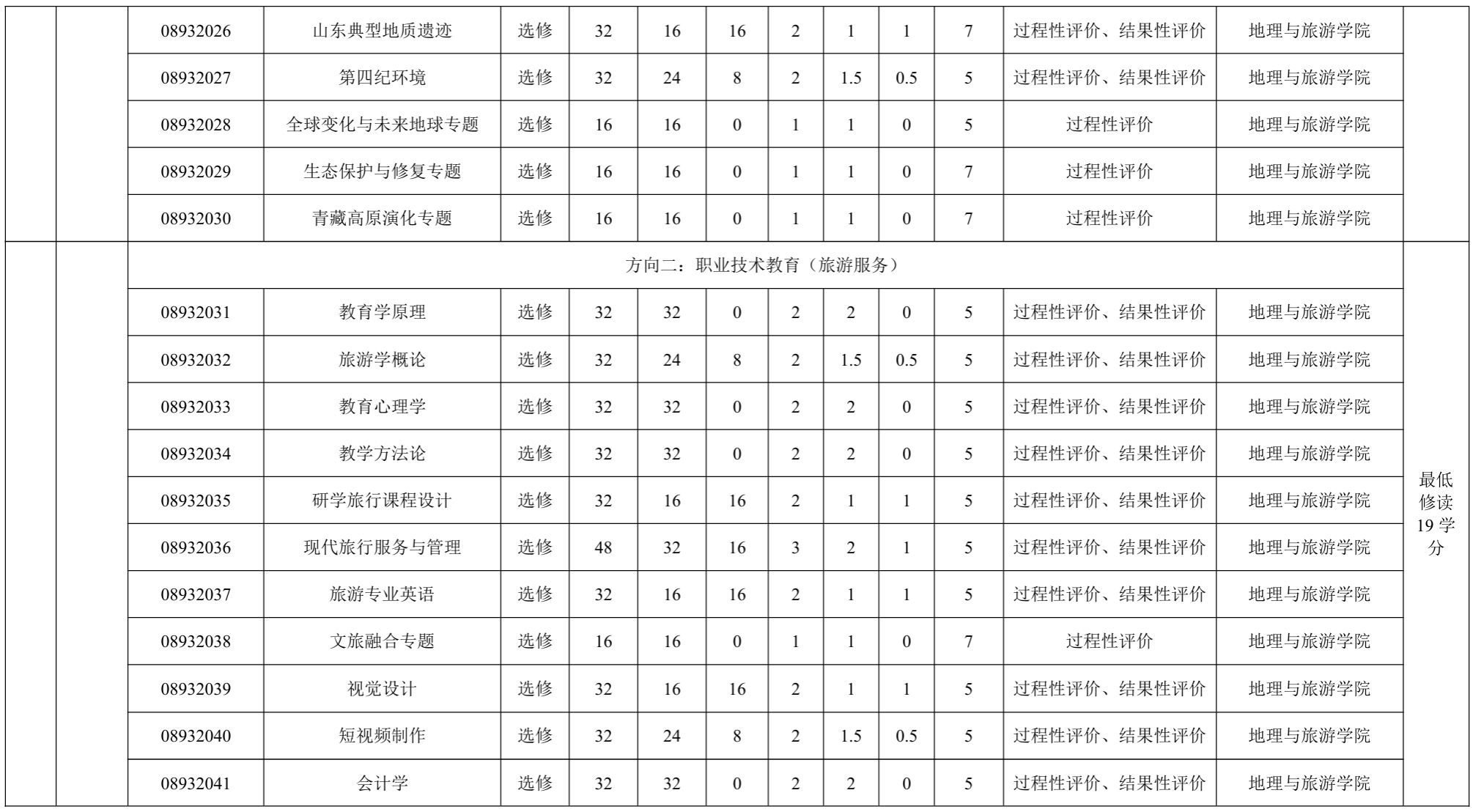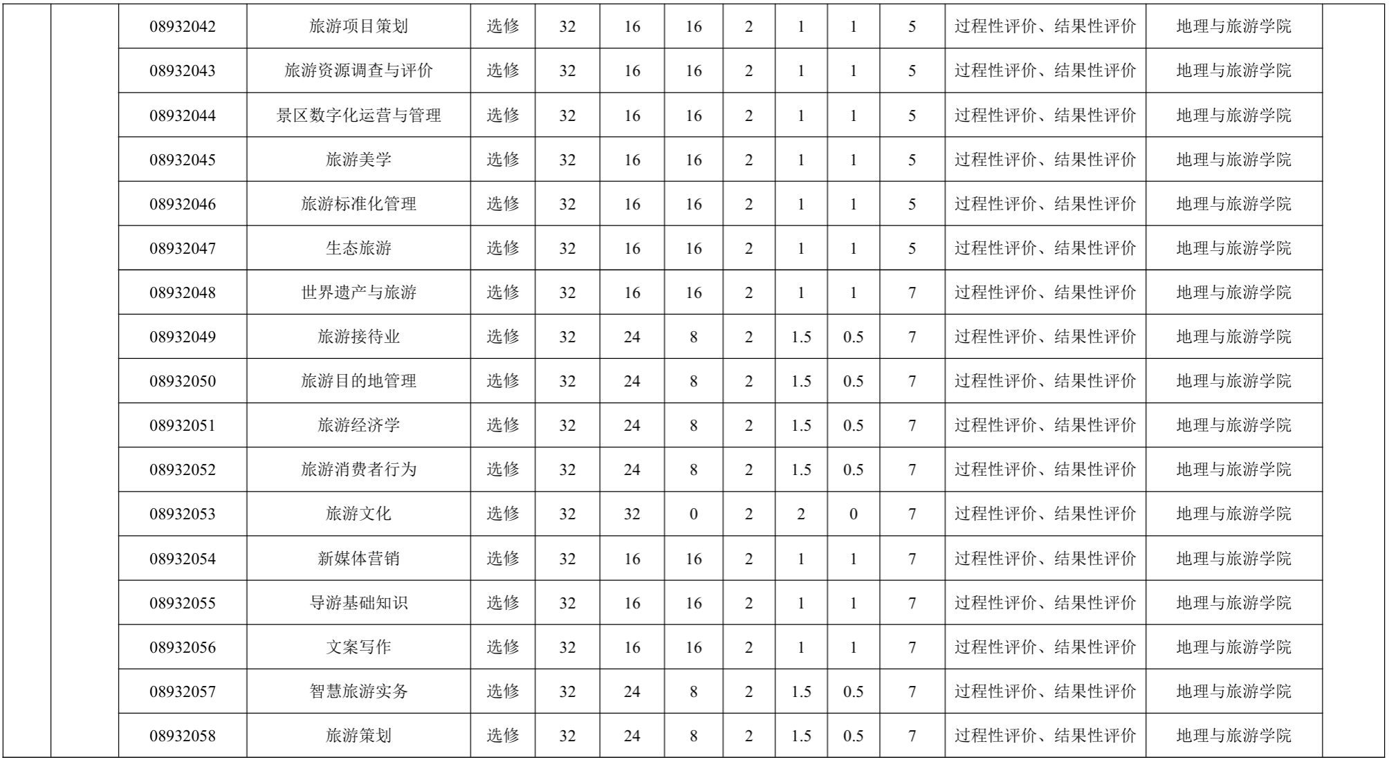 专业基础课程与核心课程:旅游地学概论、构造地质学、地貌与第四纪地质学、 旅游资源学、旅游规划与开发、测绘与地图学、地理信息系统、自然地理学及人文地理学等课程。