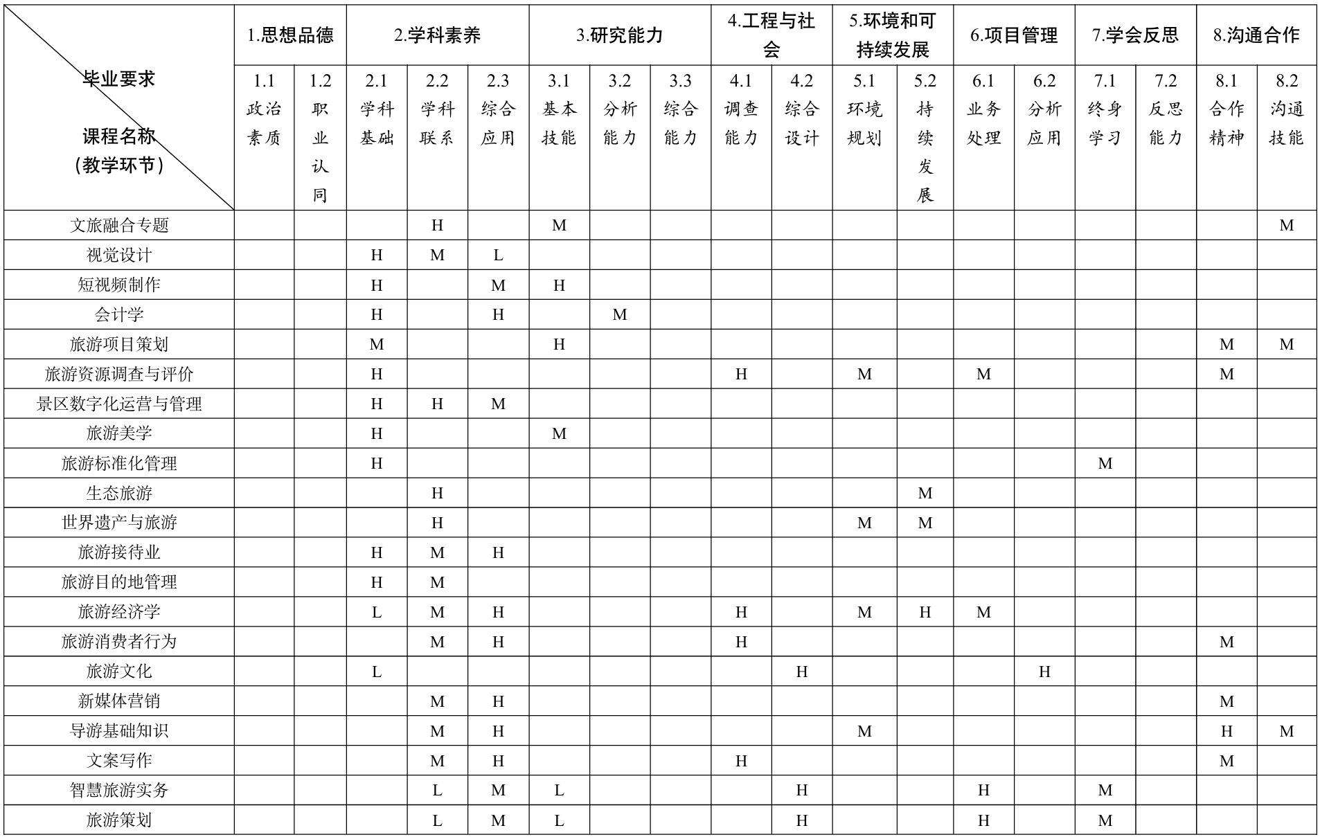 1.【职业规范】具有坚定的政治方向,践行社会主义核心价值观,增进对习近平 新时代中国特色社会主义思想的认同。能够在旅游资源的规划、开发和管理中遵守工 程职业道德规范,履行责任,承担义务。