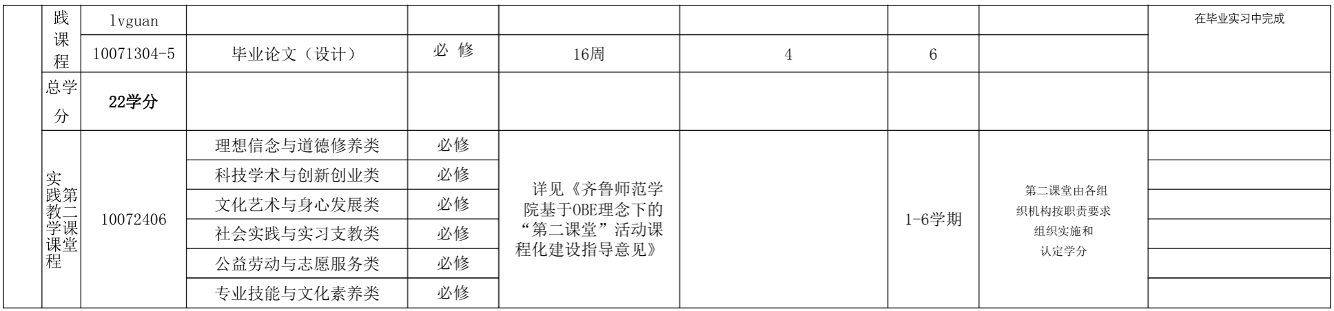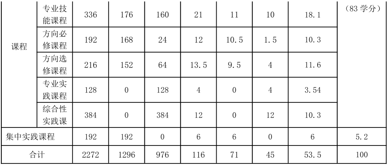 (4)课程实践:部分课程在开设学期中设置每周一个学时的实践教学。校内公益劳动、专业见习、毕业实习、毕业设计等。