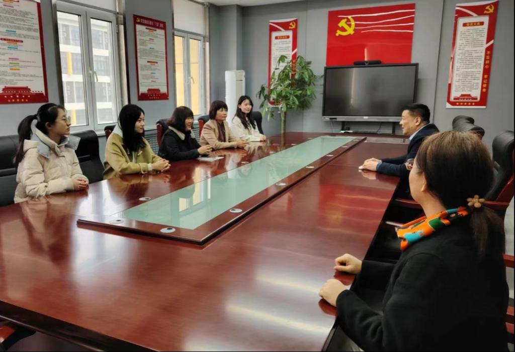 章丘中学初中部校长牛余军代表学校对王敏一行表示热烈欢迎。为确保实习同学能够快速融入学校教学,牛余军对学校的发展概况、办学理念等进行了详细介绍,并给每位同学都分配了指导老师,帮助她们尽快进入工作角色,顺利开展实习工作。