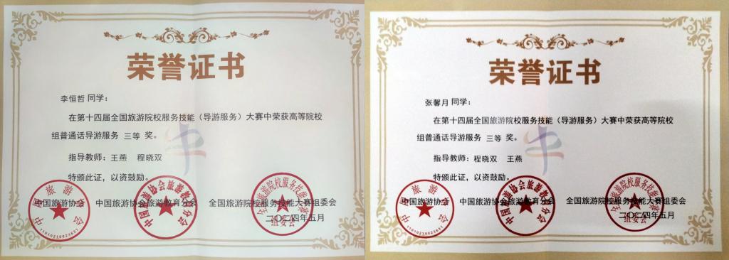 此次比赛由我校地理与旅游学院程晓双、王燕老师带队指导,派出两名同学参赛。经过理论考核、导游讲解(包括自选景点讲解和专题讲解)和才艺展示三个部分,全面考察选手的导游服务能力和综合素质。2022级旅游管理与服务教育专业李恒哲、张馨月同学获得高校组普通话导游服务三等奖,在比赛中,两位选手声情并茂的讲解、沉着自如的应变、灵活精妙的语言表达以及精彩纷呈的才艺表演给评委们留下了深刻的印象,充分展示了我校旅游管理与服务教育专业的育人成果。