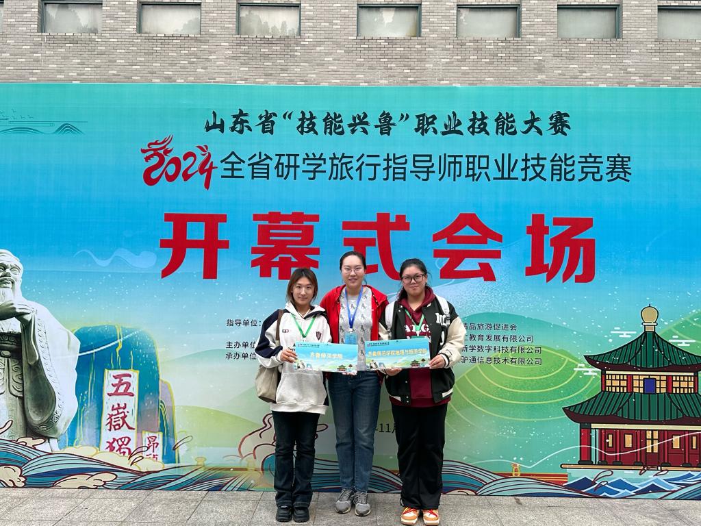 比赛备赛期间,旅游管理教研室王燕、程晓双、赵茗悦老师围绕山东省研学旅行资源特色和优势条件,对参赛选手进行了精心的赛前指导,深入挖掘泉水文化、科技文化、齐文化、泰山文化等12个资源类型和24个资源点的特点,设计了精彩的研学课程,并进行了生动的实操展示,展现了卓越的专业技能和创新能力,最终荣获佳绩。