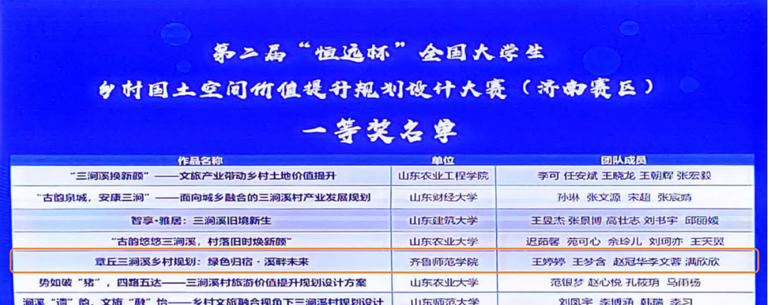 齐鲁师范学院“涧溪时光,快乐起航”团队荣获“恒远杯”乡村国土空间价值提升大赛一等奖