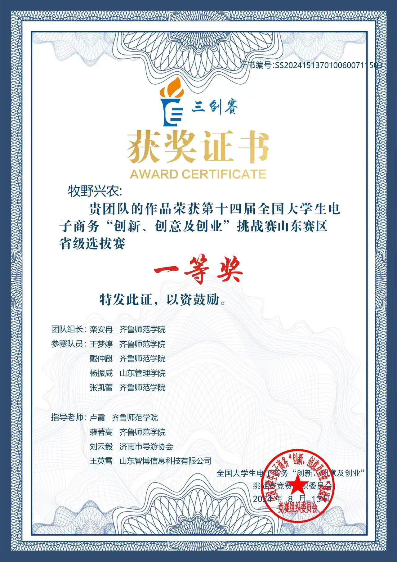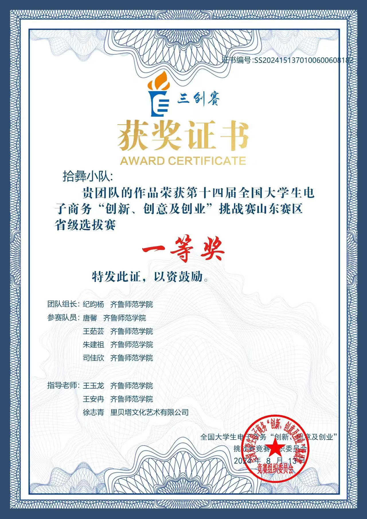 第十四届全国大学生电子商务“创新、创意及创业”挑战赛省级一等奖2项,二等奖1项