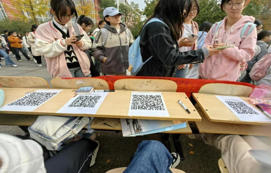 此次活动围绕两个部分,一个部分为让来往同学驻步停留扫码了解明水古城风景内涵,呼吁同学们前往明水古城游玩。另一个部分为在横幅上写下自己的名字,领取甜蜜的糖,为活动进行增添欢乐。