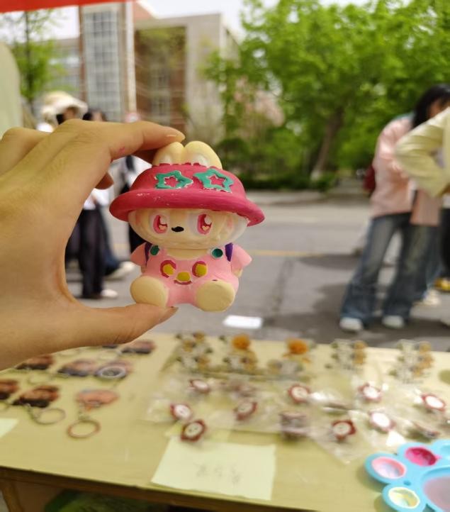在二号教学楼下的道路旁,“环益家乡梦,童行共振兴”活动正如火如荼地开展。人潮涌动,同学们驻足摊位积极参与活动,贡献自己的爱心。现场气氛热烈非凡,大家积极参与其中,通过制作石膏娃娃与写明信片充分展现出对助力乡村发展这一公益事业的热忱。这场活动不仅搭建起大学生参与乡村振兴的桥梁,更以其高涨的人气和热烈的氛围,彰显出青年群体对公益事业的担当与热情,成为校园中一道亮丽且充满活力的风景线。