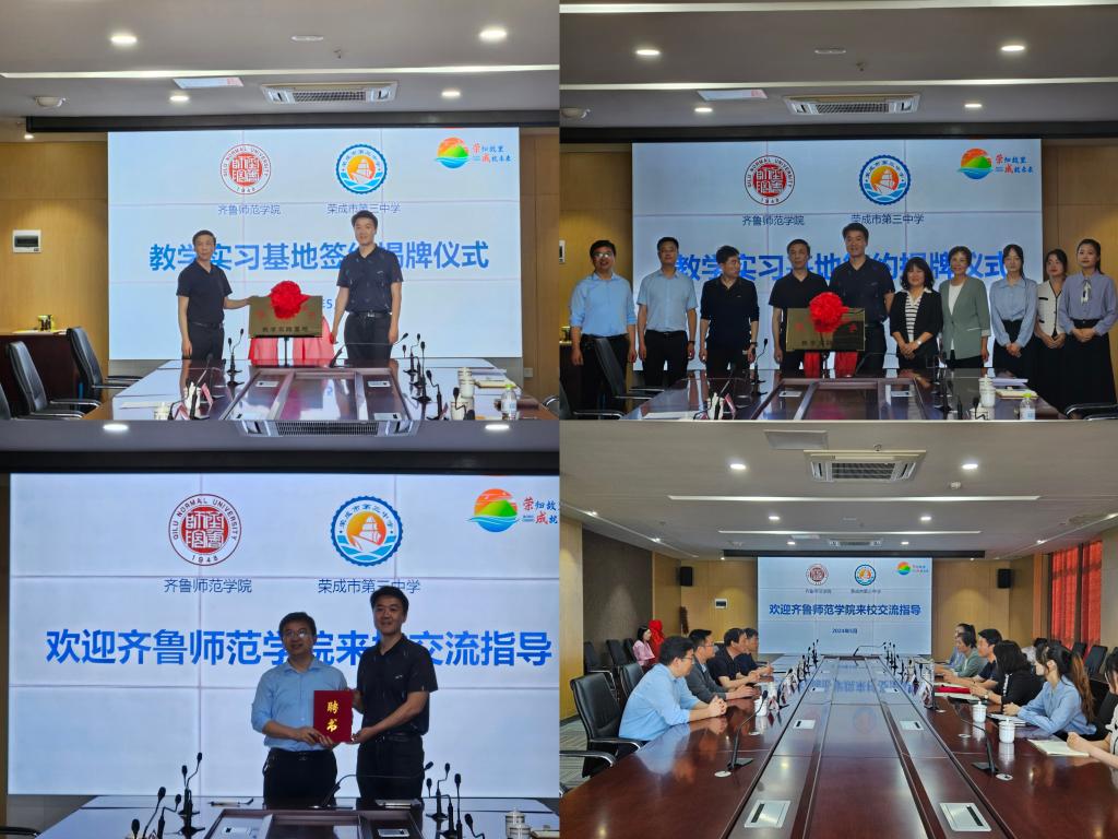 在双方与会领导、老师的共同见证下,荣成三中与齐鲁师范学院签署了合作协议书,举行挂牌仪式;并为于慧老师颁发齐鲁师范学院客座教授聘书。
