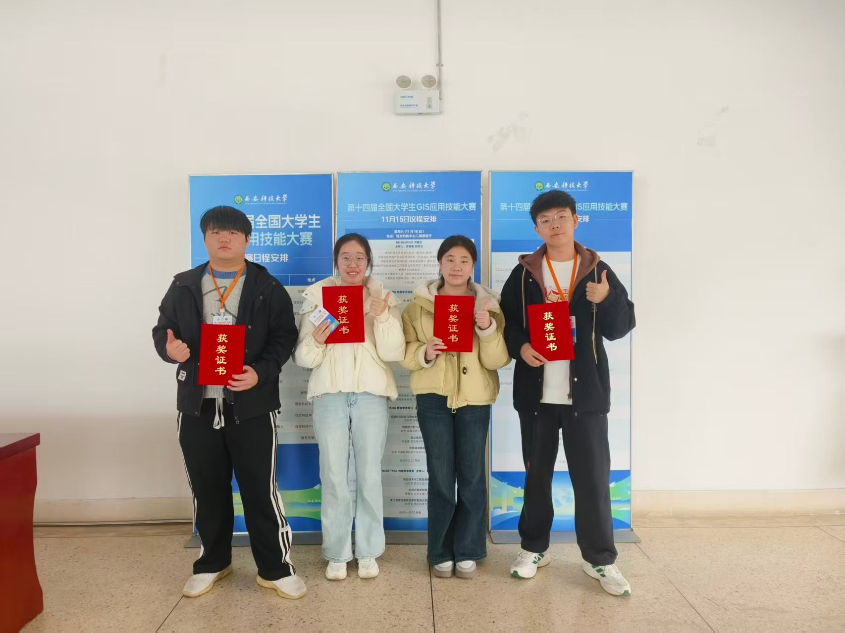 全国大学生GIS应用技能大赛要求每所高校选派一支不超过4人的本科生队伍参赛,重点考察选手运用GIS工具解决复杂实际问题的综合能力,涵盖空间数据采集编辑与集成处理、空间分析技术应用、文档组织撰写以及团队协作与统筹规划等多个方面。我院始终秉持“理论与实践并重”的育人理念,将此类高水平学科竞赛作为提升学生创新与实践能力的重要平台,通过参赛有效拓宽了学生专业视野,增强了解决复杂实际问题的能力,也为国家一流专业建设与创新型人才培养提供了扎实支撑。
