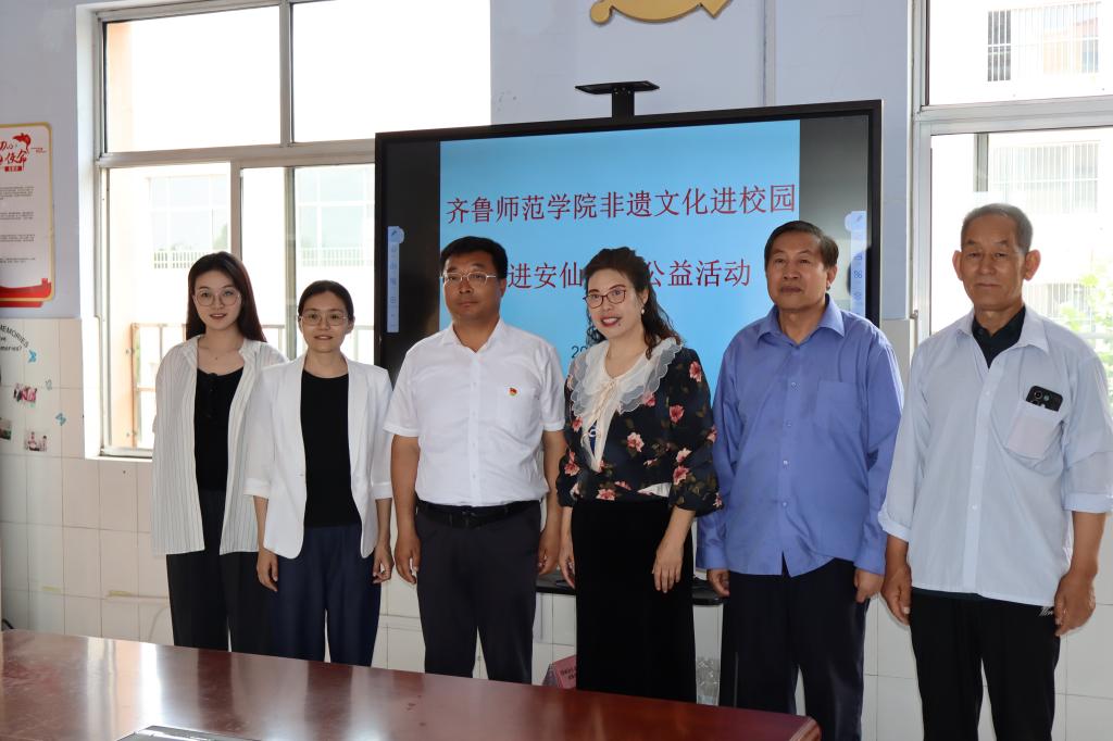 5月30日,齐鲁师范学院地理与旅游学院联合莱芜区鲁芳艺术团走进莱芜区安仙小学,开展非遗文化进校园活动,莱芜区安仙小学校长柏峰、莱芜区鲁芳艺术团团长张玉芳、地理与旅游学院老师孙文秀、徐媛媛带领学生参加此次活动,