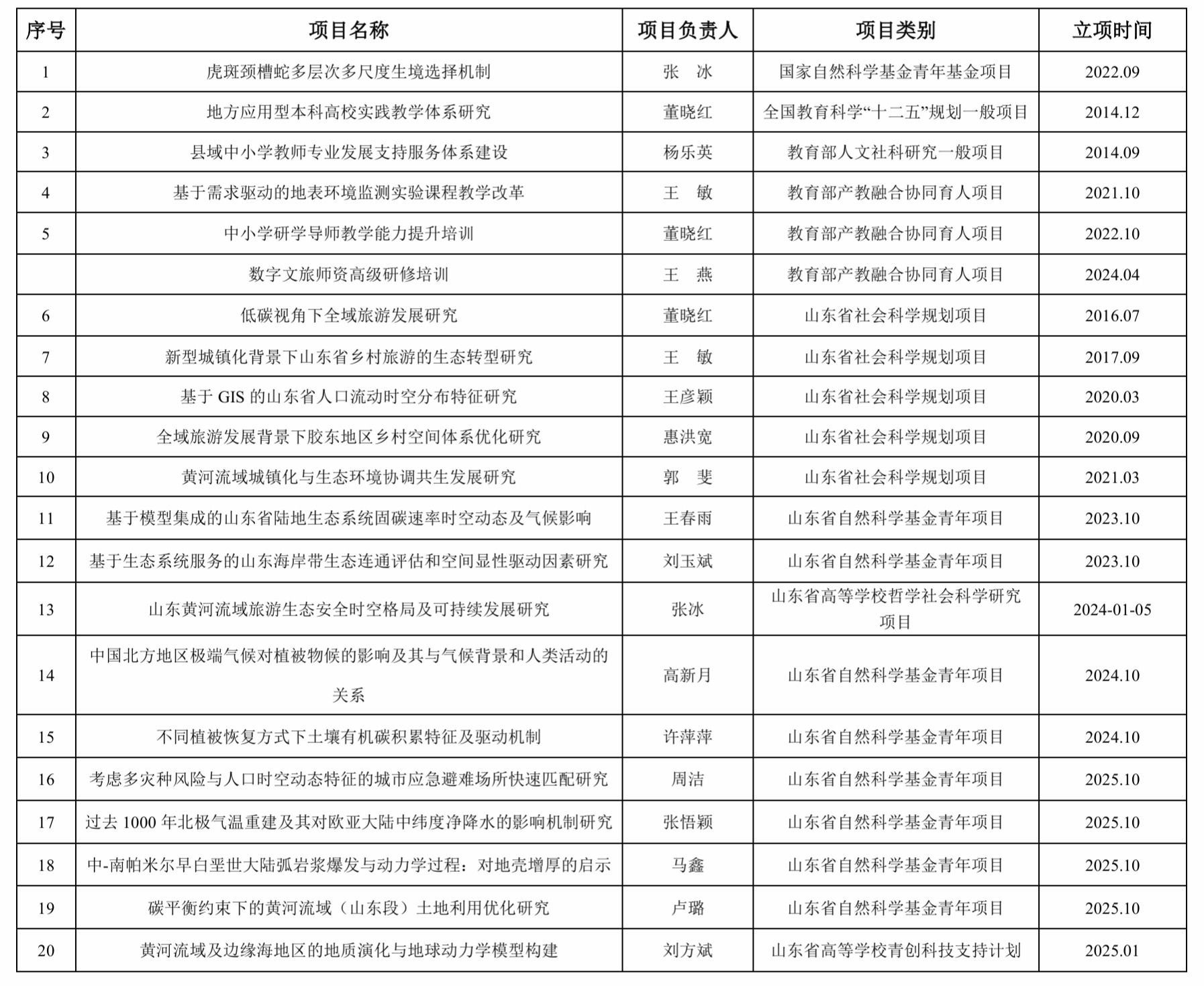 地理与旅游学院 省、部级以上课题一览表(2012-2025)