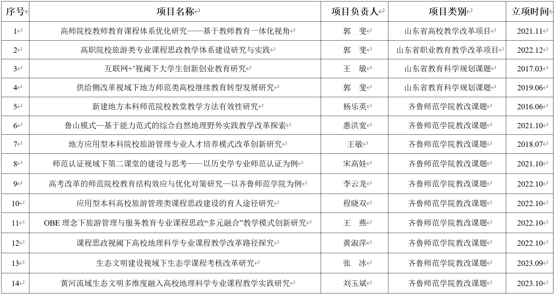 地理与旅游学院教育改革课题一览表(2016-2024)