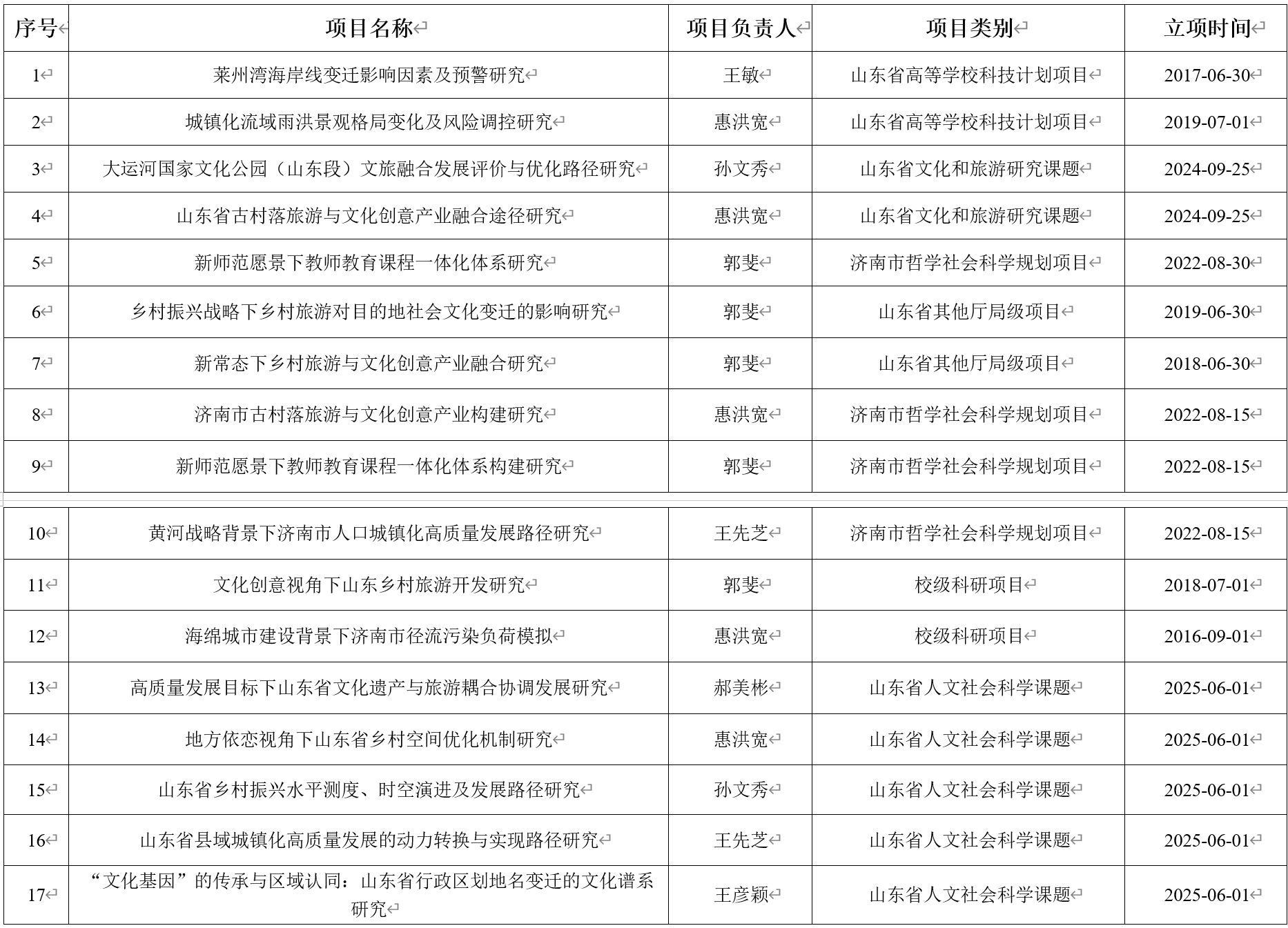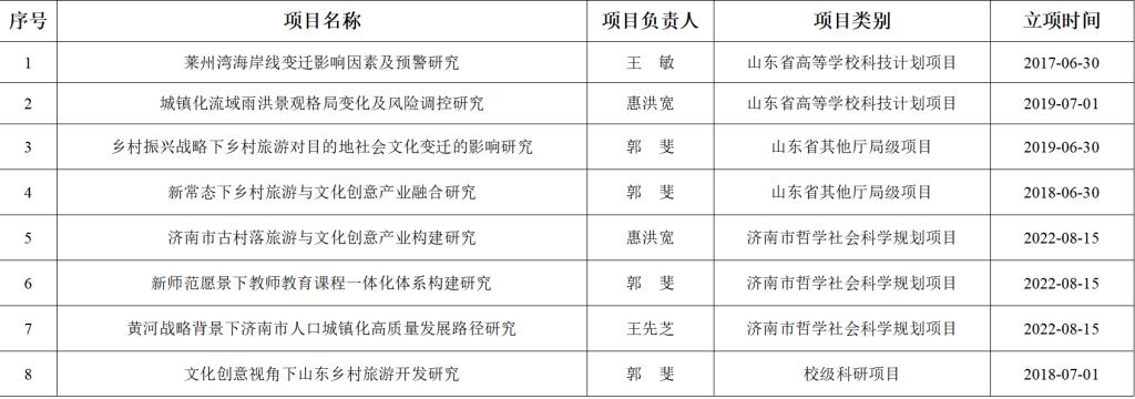 地理与旅游学院 市、厅级课题一览表(2012-2024)
