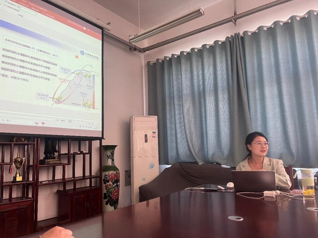 研讨会中,地理与旅游学院新进教师黄丽容做了主题为“温度变化对长白山苔原带典型灌木生态系统的影响”的学术报告。该研究以长白山苔原带灌木-土壤生态系统为研究对象,采用“空间代替时间”的方法,将植被-土壤整体在海拔间互换来分别模拟气候变暖和气候变冷。研究分析了温度变化对长白山苔原带土壤微生物群落特征和灌木叶片功能性状的影响,并进一步揭示气候变化下土壤微生物-土壤理化性质-叶片功能性状三者及其耦合作用对长白山苔原带灌木生长的调控机制。研究结果为预测高山苔原带未来植被分布变化提供了重要的依据。报告最后,各位老师针对报告内容与黄丽容老师进行了充分讨论。