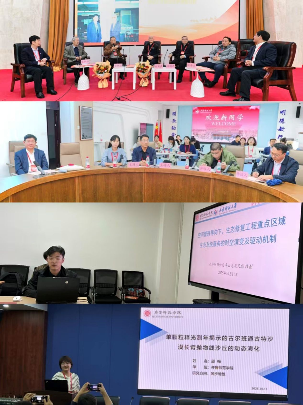 学术年会学术论坛由主题报告、大会报告、分会场报告及学会嘉奖等环节组成。陈国忠参加“圆桌论坛”,分享了个人工作经历及与学会的深厚渊源。黄淑萍、付桂军应邀作为“新时代地理教育发展与创新实践”分会场主持人、评议人并做精彩报告。孔祥伦、邵梅分别在“全球环境变化与生态系统区域响应”分会场、“年代学、环境变化与人类适应”分会场作了题为“空间管理导向下生态修复工程重点区域生态系统服务的时空演变及驱动机制”和“单颗粒释光测年揭示的古尔班通古特沙漠长臂抛物线沙丘的动态演化”的报告。