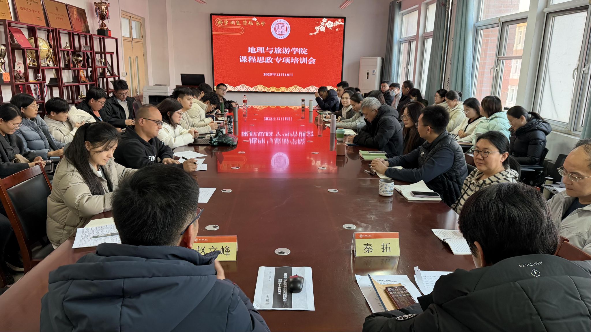 为深入落实立德树人根本任务,推动课程思政与专业教学深度融合,2025年12月18日,地理与旅游学院在学院会议室举办课程思政专项培训。马克思主义学院院长赵立峰应邀作专题指导,学院全体教职工参加培训。培训由学院党委书记秦拓主持。