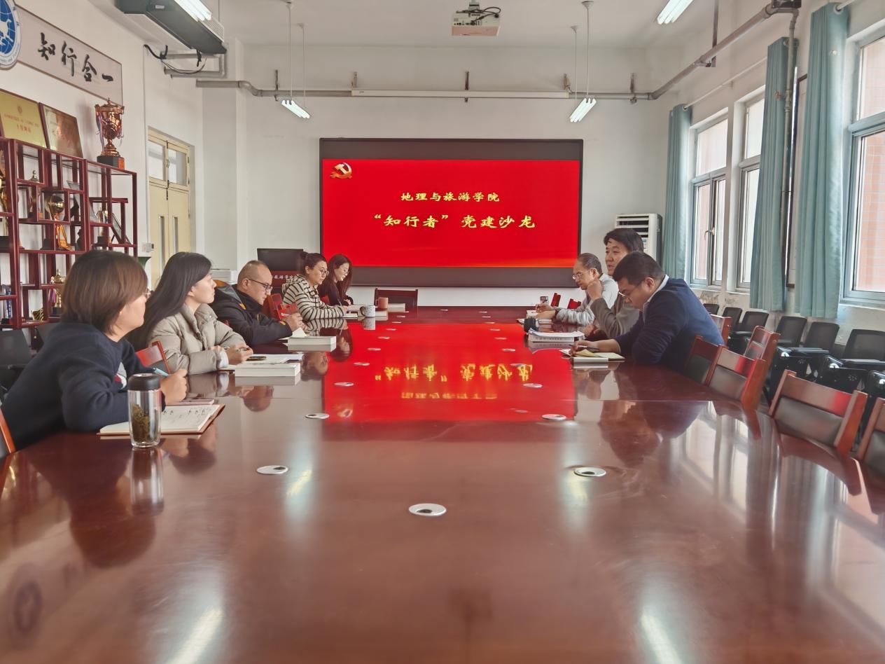 12月19日,地理与旅游学院举办“知行者”党建工作沙龙,党委成员及各党支部书记参会,会议由党委书记秦拓主持。