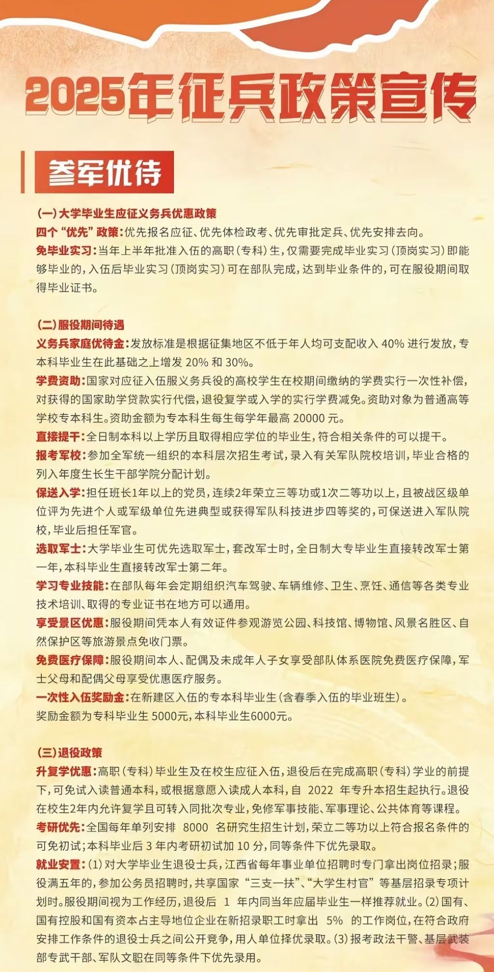入伍条件、报名流程、学费补偿、考研加分、学籍保留……“近视能不能入伍”“专科生入伍有什么优势”“入伍期间学籍怎么保留”等问题接连抛出,学姐的专业解答让同学们对征兵政策有了更清晰的认知。