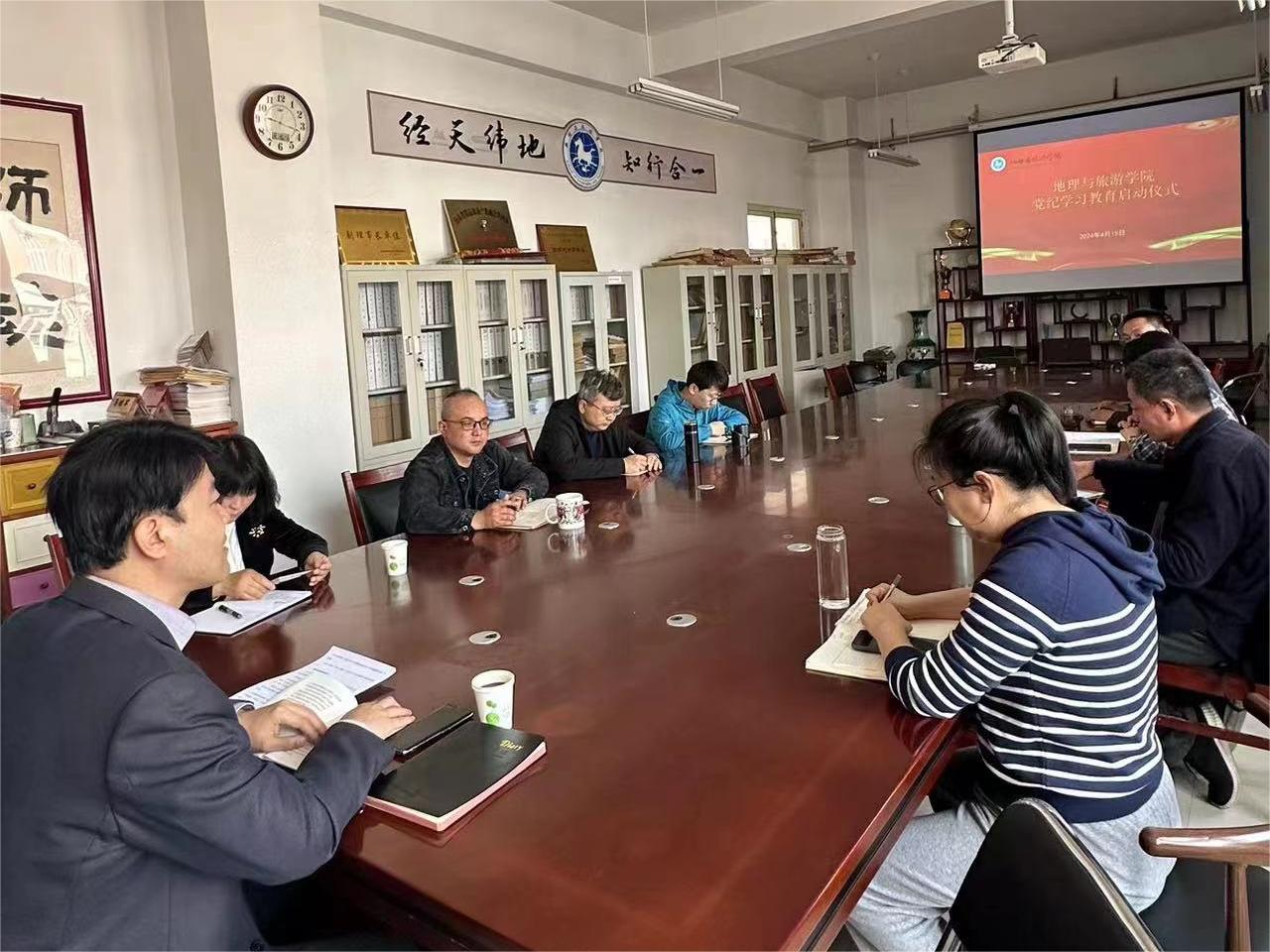 4月15日,地理与旅游学院在学院会议室召开党委理论学习中心组(扩大)集体学习会。学院党委理论学习中心组全体成员及全体辅导员参加会议,会议由学院党委书记秦拓主持。