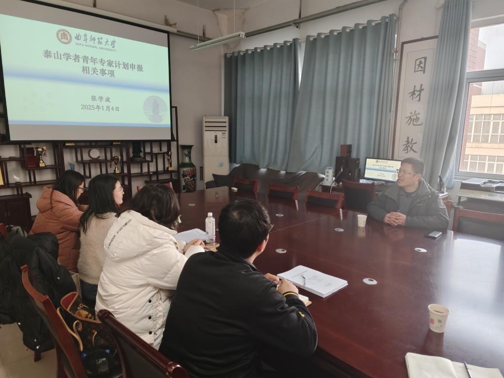 1月4日下午,齐鲁师范学院地理与旅游学院特邀曲阜师范大学地理与旅游学院泰山学者青年专家、博士生导师张学波教授,为学院青年教师作了题为《泰山学者青年专家计划申报相关事项》的专题报告。本次活动由学院院长王敏教授主持,学院多位青年教师积极参加并认真聆听。