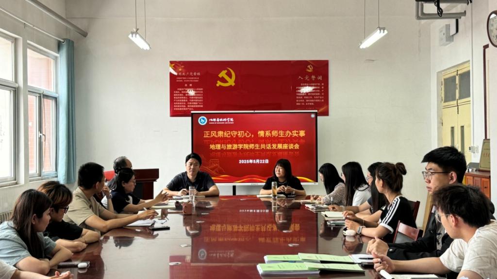 为深入贯彻落实中央八项规定精神,扎实推进廉政建设,倾听师生心声,解决实际问题,地理与旅游学院于5月22日在1号教学楼B406会议室隆重召开了“正风肃纪守初心,情系师生办实事-----地理与旅游学院师生共话发展座谈会”。会议由学院党委书记秦拓主持,学院党委成员、行政人员及全体辅导员参加。