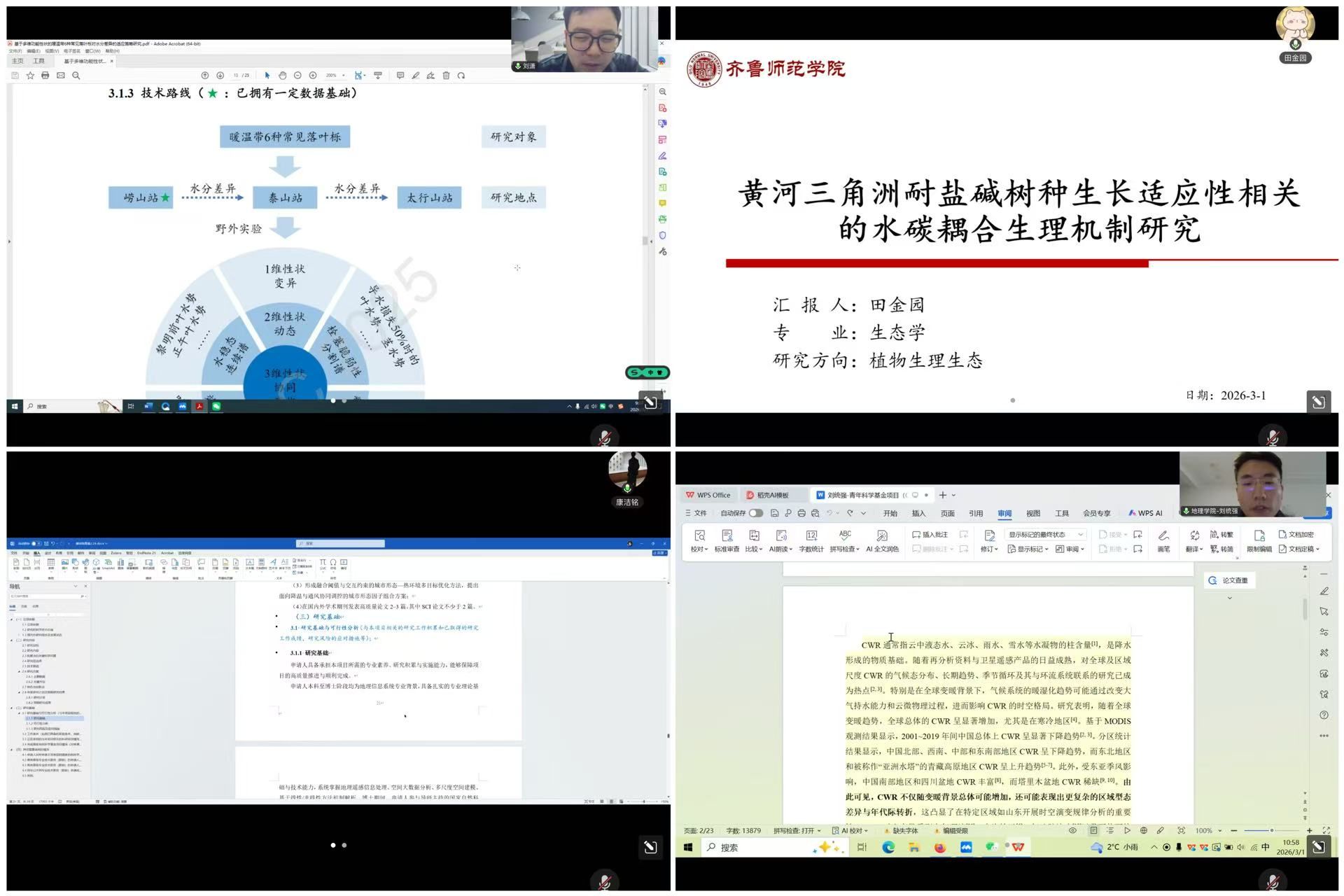 3月1日上午,学院针对生态学与自然地理学方向,在线举办了国家自然科学基金项目专家论证会,邀请河北大学韩兴国教授、北京师范大学吴秀臣教授进行线上指导。论证会由地理与旅游学院院长王敏主持,副院长惠洪宽和学科带头人巩合德参加会议。申报教师刘潇、田金园、康洁铭、刘统强与高新月汇报了初稿。两位专家对每个项目进行了点评,从全球变化研究前沿、关键技术创新路径、重大科学问题突破等战略角度提出了建设性意见,指导申报教师进一步优化研究方案。