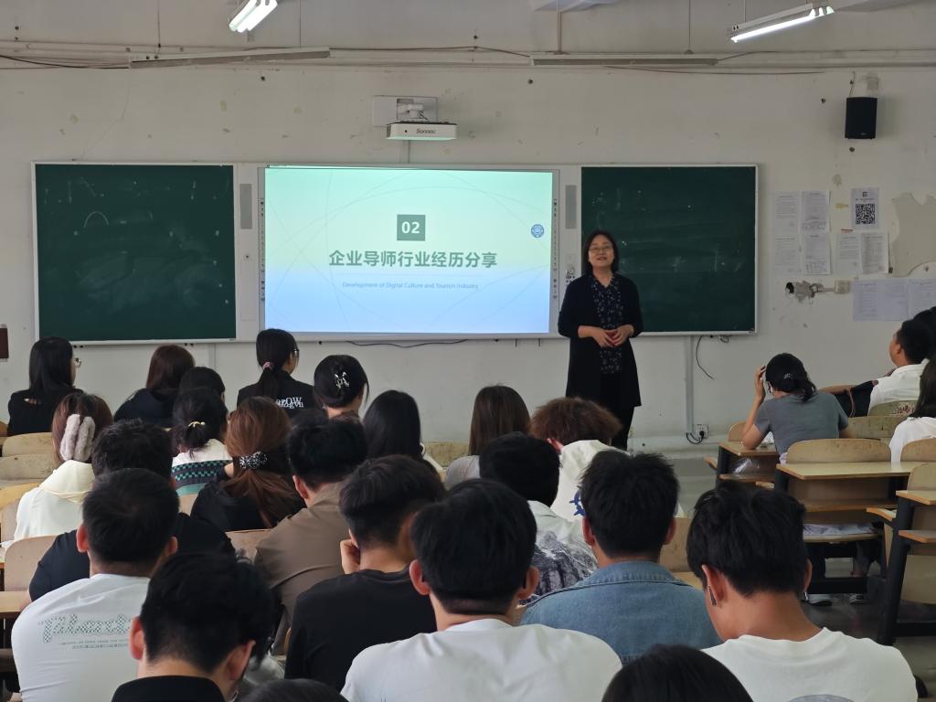 山东文旅投资集团华仁教育市场总监李海涛分享了自己的行业经验和职业发展历程,文旅数字运营中心总经理赵宴楸、研学方向专业负责人赵茗悦,从切身行业经历入手,分享初入职场时的懵懂与探索,到历经挑战后的成长与突破。告诫同学们珍惜时间、努力学习,鼓励同学们积极参与实践,提升自己的专业能力和综合素质。