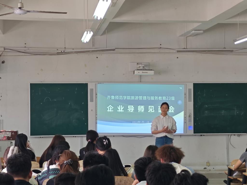 为全面提高人才培养质量,贯彻学生中心理念,创新人才培养机制,充分发挥企业导师在本科生教育培养过程中的价值引领和专业指导作用,促进学生成长成才和个性化发展,打造一流本科教育。5月11日上午,地理与旅游学院与山东文旅集团华仁教育面向校企合作班2023级旅游管理与服务教育同学举办企业导师见面会活动。地理与旅游学院旅游管理专业负责人董晓红、教研室主任王燕,山东文旅集团华仁教育集团市场总监李海涛、文旅数字运营中心总经理赵宴楸、研学方向专业负责人赵茗悦等参加本次活动。