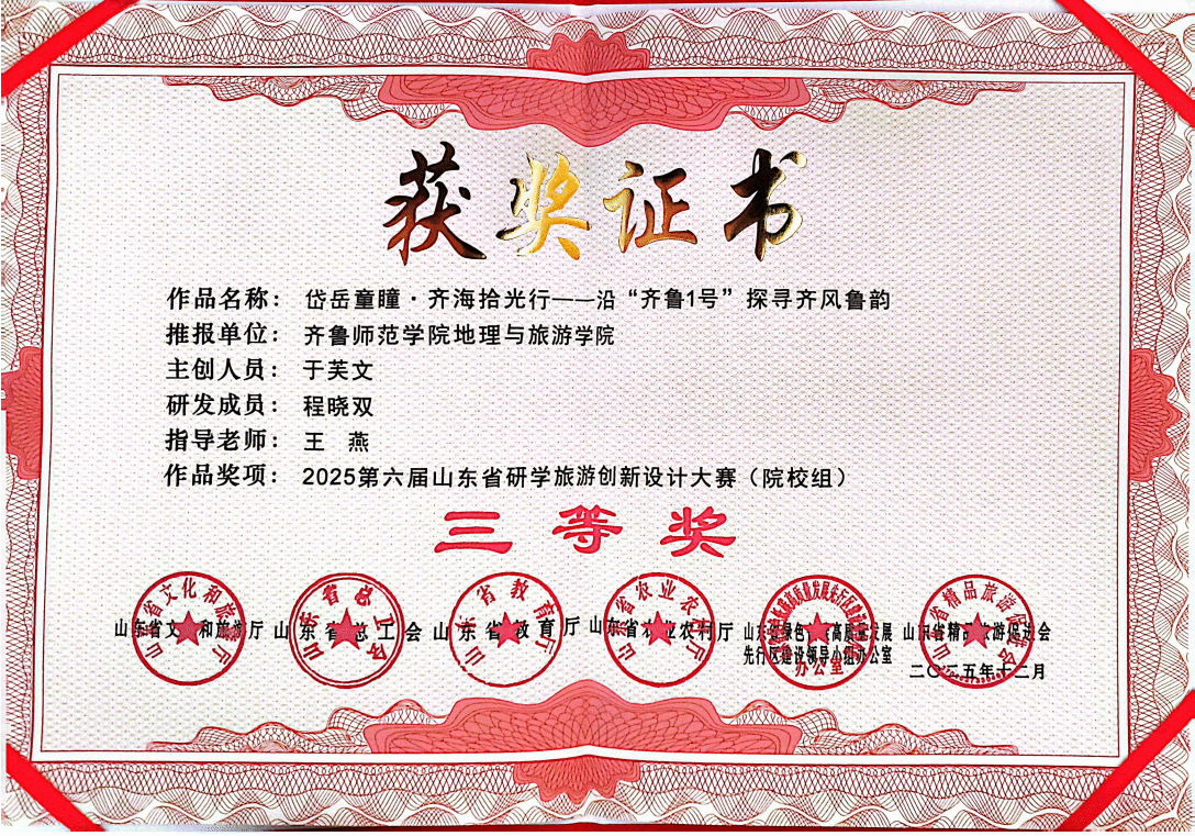 2025第六届山东省研学旅游创新设计大赛(院校组)