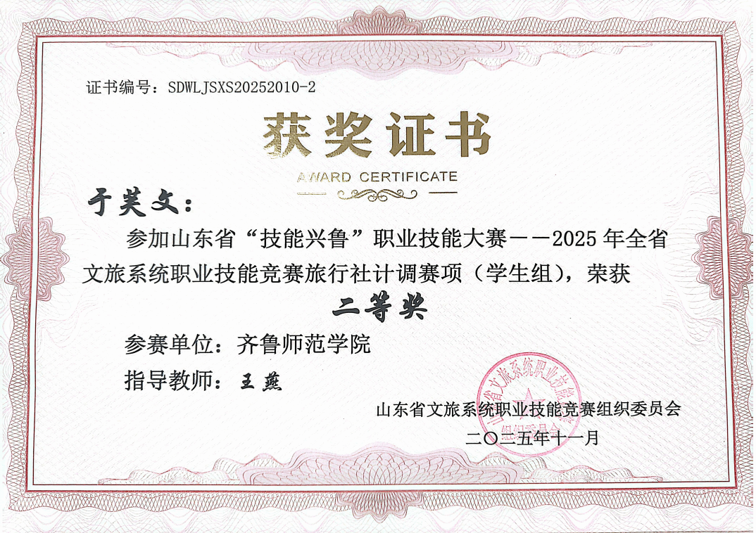 山东省“技能兴鲁”职业技能大赛--2025年全省文旅系统职业技能竞赛旅行社计调赛项(学生组),