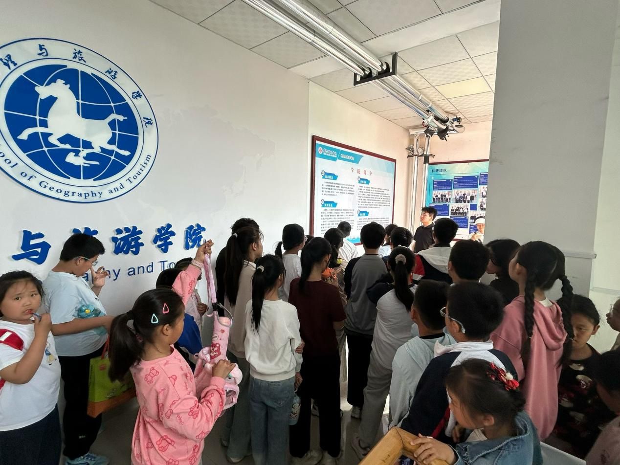 第一站:地理与旅游学院展厅。活动负责人向师生们介绍了学院的发展历程、学科特色及育人成果,帮助小同学们快速了解专业背景,激发探索兴趣。