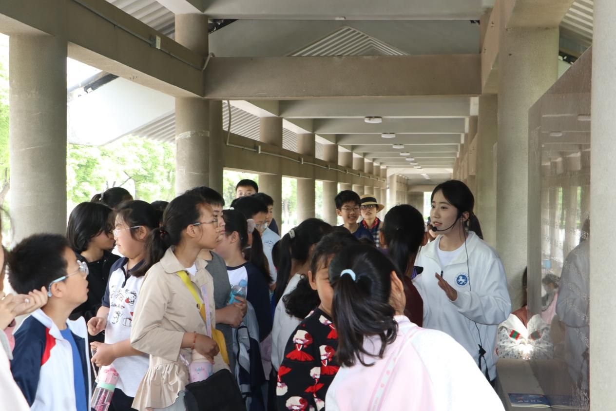 第三站:校园文化长廊。同学们漫步于文化长廊,金声讲解员生动讲述了校园的历史底蕴与地域特色,大家在行走中沉浸式感受了浓厚的人文氛围。