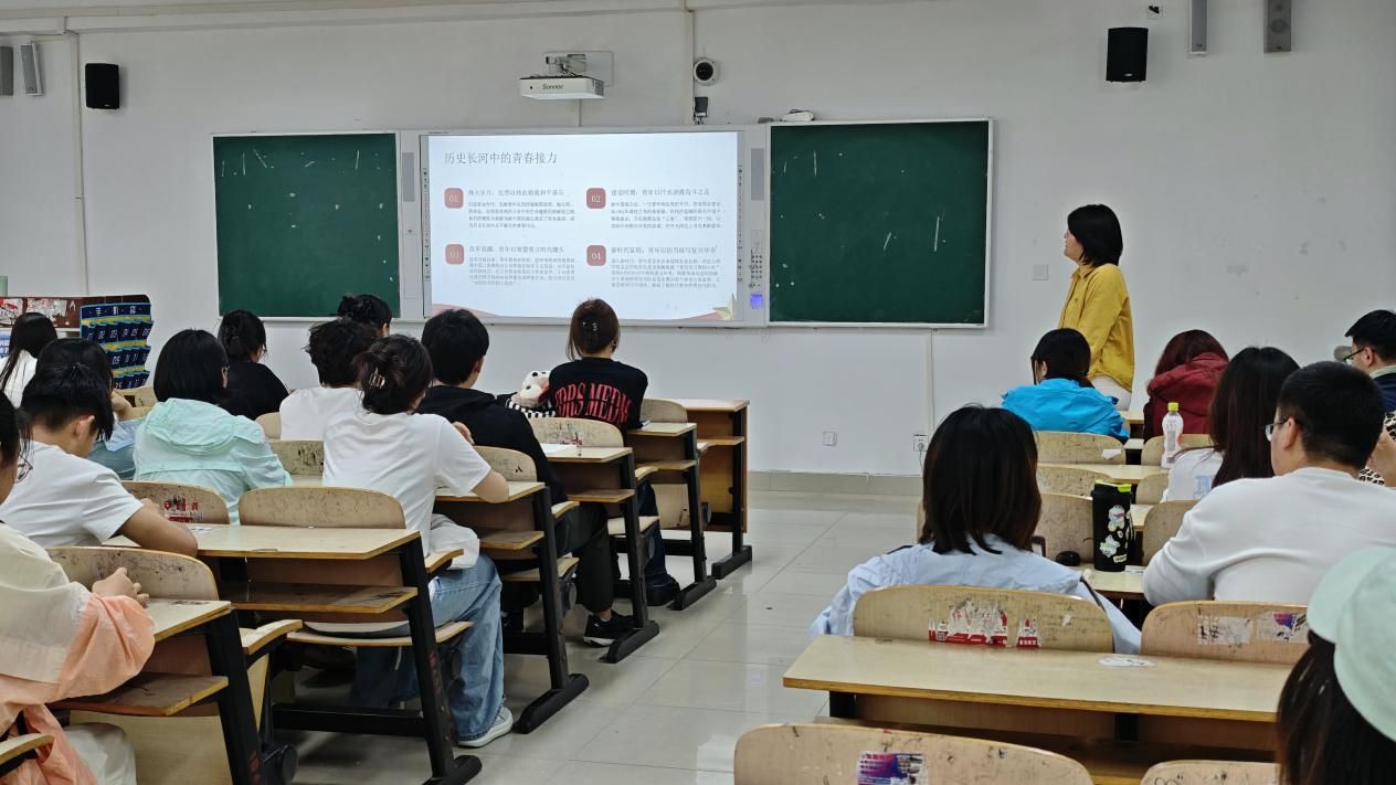 邵梅老师以“青春与党同行”为脉络,回顾了一代代中国青年在党的领导下为民族独立、国家富强不懈奋斗的光辉历程,从革命年代抛洒热血的青年志士,到建设时期扎根基层的建设者,再到新时代冲锋在前的青年榜样,生动诠释了“党有号召,青年有行动”的光荣传统。她结合新时代青年的成长背景,解读了新时代赋予青年的责任与荣光,鼓励同学们坚定理想信念,立足专业所长,将个人理想融入国家发展大局,以过硬本领回应时代召唤。现场氛围庄重热烈,同学们认真聆听、深受触动,纷纷表示将把爱国情、强国志转化为实际行动,在学习与实践中锤炼本领,以青春之我践行“请党放心,强国有我”的铮铮誓言。