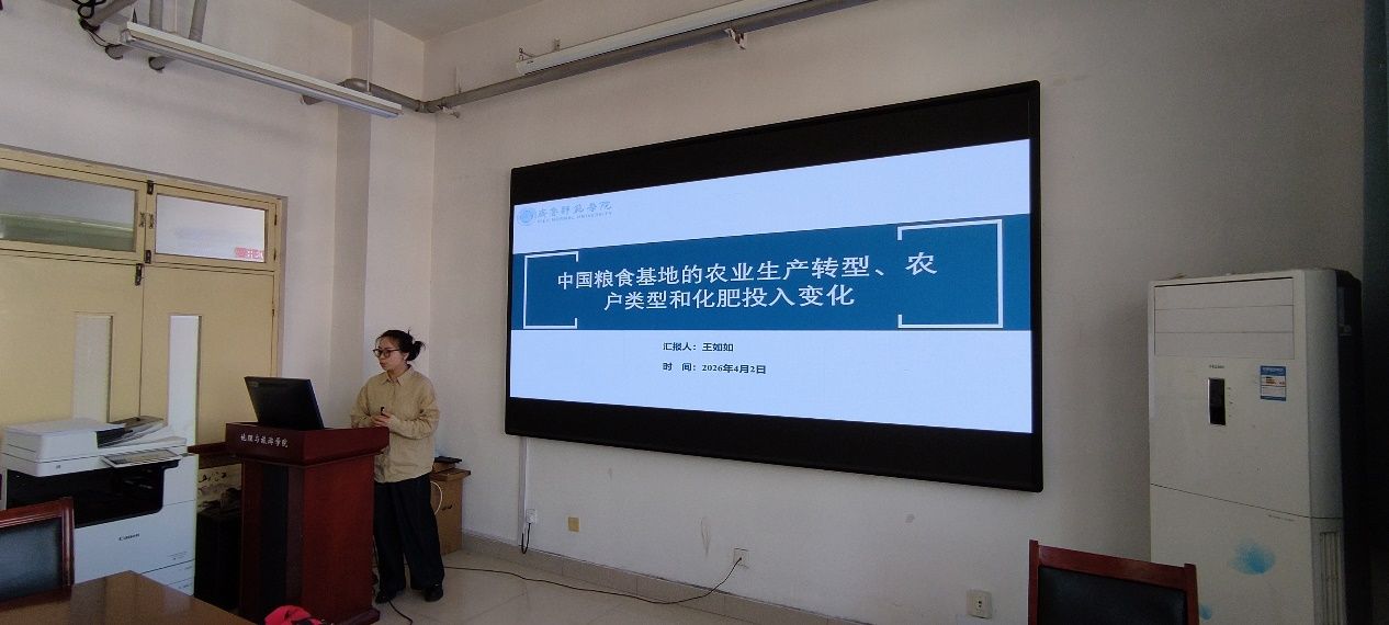 随后,王如如博士作了题为《中国粮食基地的农业生产转型、农户类型和化肥投入变化》的学术报告。报告首先梳理了全球与中国的农业生产转型模式。在此基础上,结合实证研究结果,深入解析了影响中国粮食基地化肥投入变化的结构性力量。报告内容紧扣当前农业绿色转型与粮食安全等重大议题,具有较强的理论价值与现实意义。